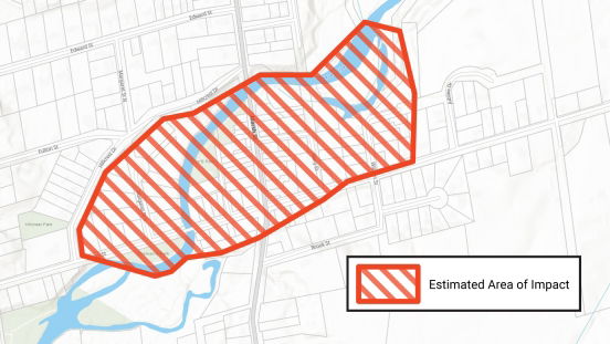 The public is advised to avoid the impacted area as flooding conditions could pose a risk to personal safety. High flows, unsafe banks, or other factors could be dangerous for residents and pets. Stay back from riverbanks and away from fast moving water. The area will continue to be monitored by Town and Grey Sauble Conservation Authority staff. Additional updates will be provided as necessary.